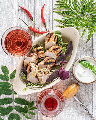 Viinisuositus: Saksalainen, hedelmäinen roseeviini.