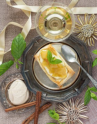 Vispaa kerma, mausta sokerilla ja kanelilla. Tarjoa kerma omenalehikäisten kanssa.