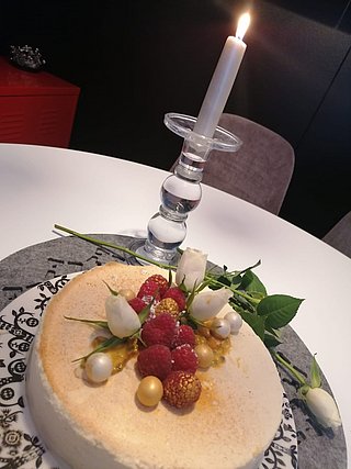 Marjoja, hedelmiä, marenkia, suklaata, ruusuja ja kultasraytä oman maun mukaan