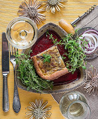 Viinisuositus: Runsas ja hapokas valkoviini. Frankenin Silvaner sopii reippaalle piirakalle.