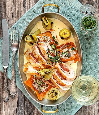 Täytetty broilerin rintafile